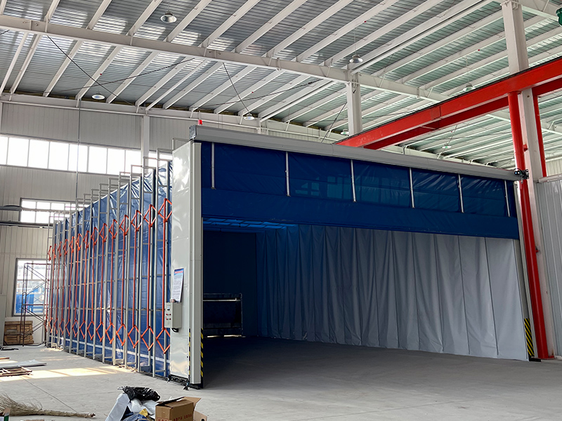適用于各種大中型設備及零部件的打磨,噴漆及烘干作業。展開前室,形成一個封閉或半封閉空間,在伸縮移動式中進行噴漆或打磨作業,收縮前室后形成一個敞開式空間,方便進行工件轉運及翻轉工作,降低了工人勞動強度和工作效率。噴漆房整體為框架式結構,表面噴塑,框架之間由阻燃PVC布鏈接密封,顏色內白外蘭,外形美觀大方,安裝快捷方便,運行平穩可靠。前室可伸展3-60米不等,寬度可做成2-25米不等,它凈化效率好,漆霧處理和打磨粉塵處理率好,提高了工人噴漆工作環境質量,深受廣大客戶好評。